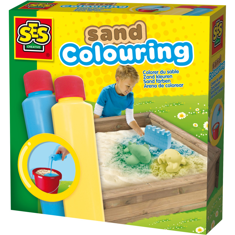 In de zandbak spelen wordt nog leuker als je het zand verft! Kleur het saaie zand mooi blauw en geel met de zandverf van SES. Zo maak je je eigen zandparadijs met gekleurde figuren. Ook geschikt voor kinetisch zand.Eigenschappen Ga lekker buiten spelen Versier je zandbakzand met deze vrolijke kleuren zandverf Uitwasbaar uit de meeste textielsoorten